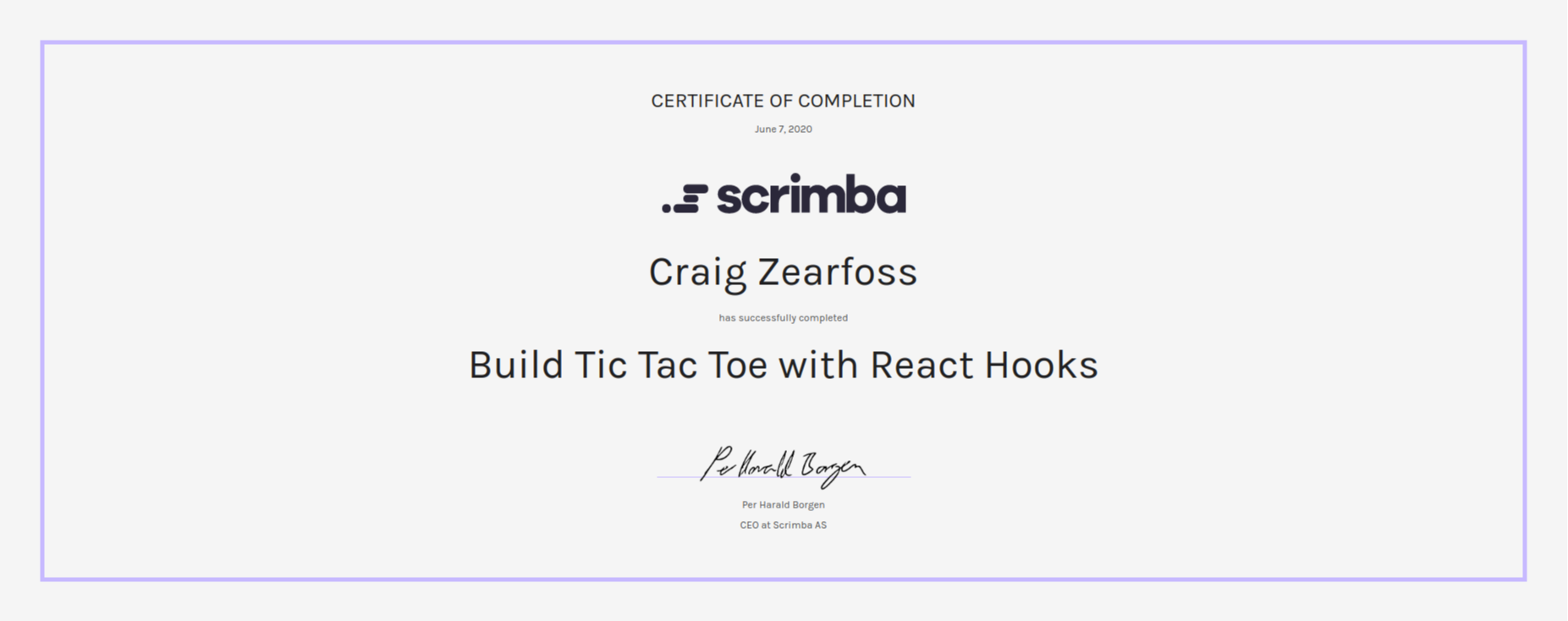Craig Zearfoss Course: Build Tic Tac Toe With React Hooks